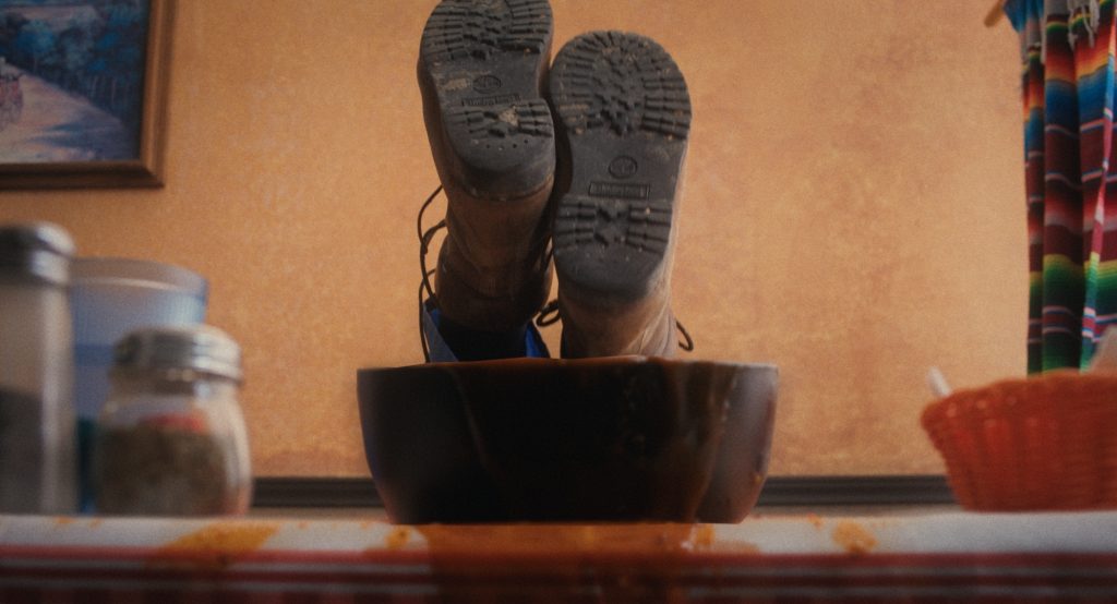 Hay una escena en la que el personaje se sumerge en un plato de Menudo, es visualmente muy potente y nos conecta de si o si con otros clásicos del cine. ¿Cómo llegaste a esa decisión estética?