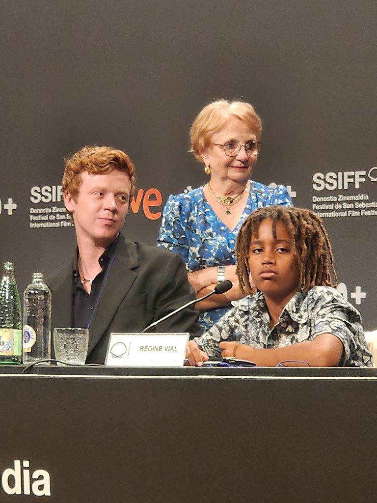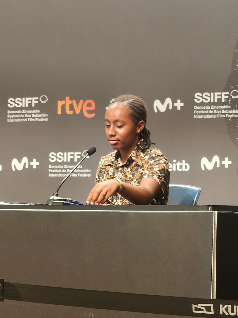 Y para responder a la primera pregunta. Para hacer una película, hace falta una gran actriz y grandes actores. Hay qué observar y hay que hacer muchas pruebas con actores y actrices para poder verificar si son los idóneos para ese personaje. Y algo que para mí es importante es que me gusta hablar, compartir ideas con los actores y actrices con quienes trabajo. Sí, para ver si compartimos la misma percepción respecto a la película. Y lo primero que me hizo elegir a Eye fue que a ella le emocionó esa historia que yo le estaba contando, lo que yo había vivido con mi madre, y Eye enseguida se preocupó por Sana y se ocupó de Sana durante todo el rodaje de la película para encarnarla.